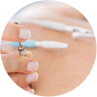 An electrical device is connected to two to four acupuncture needles, providing a weak electrical current that stimulates the acupuncture needles during the treatment.